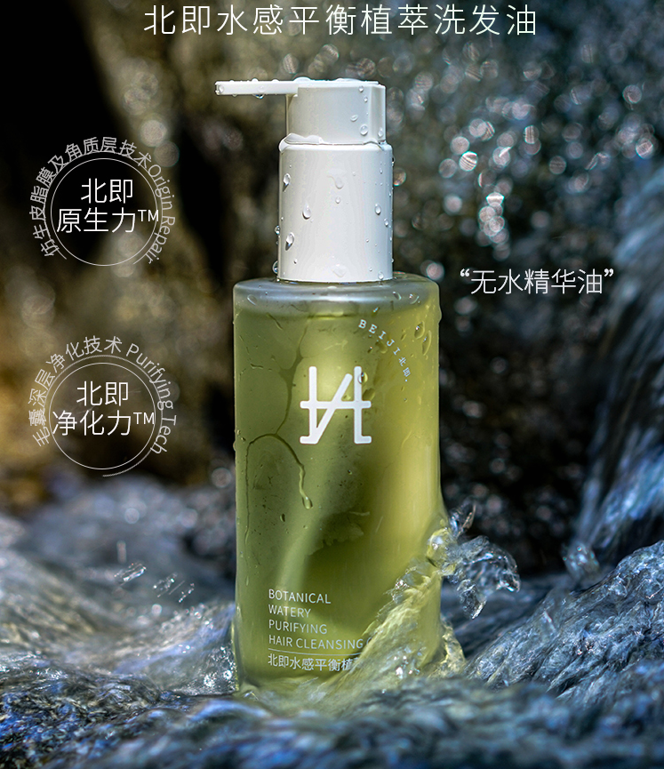 4、头皮护理领域也掀起了「以油养肤」的热潮。北即的明星单品水感平衡植萃洗发油在产品思路上,类似于卸妆油较于卸妆水的升级。