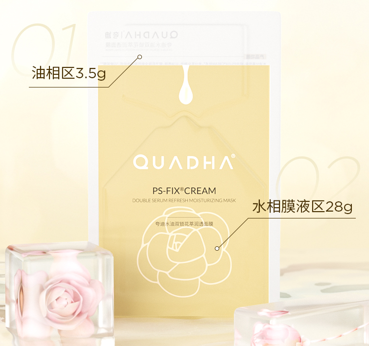 2、精油面膜领域,夸迪新推出的水油双锁花萃润透面膜引人注目。