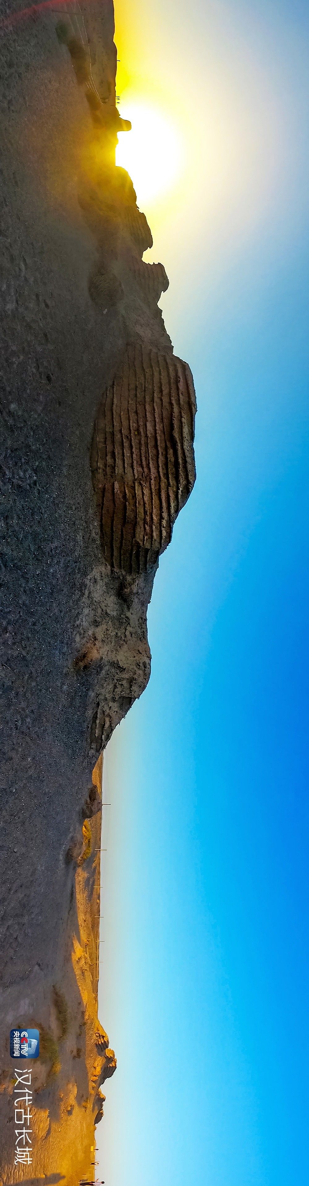 △ 这一段长城是目前保存最为完整的汉长城,最高处可达3米多。它由芨芨草、沙砾、黄土逐层夯筑而成,这样夯筑的土墙不惧风雨,千年不倒。绵延曲折的长城,在荒凉的戈壁滩上宛如一道屏障,保护着丝绸之路。可以说正是因为修建了长城,才有了稳定、安全,才有了人烟、城郭,才有了丝绸之路的繁华,汉唐的兴盛。
