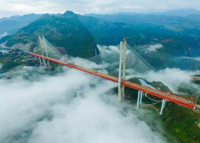 ▲ 北盘江大桥。杭瑞高速公路毕节至都格段北盘江大桥,坐落于云南宣威与贵州水城交界处,横跨云贵两省,全长1341.4米,桥面到谷底垂直高度达到吓人的565米,相当于200层楼高,成为世界第一高桥。2016年09月10日,北盘江大桥实现合龙,毕都高速公路全线预计2016年底可建成通车。