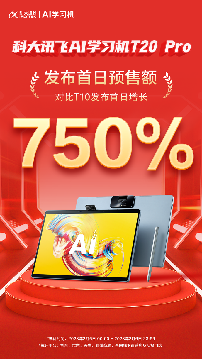 全新推出的科大讯飞AI学习机T20 Pro售价8999元,新品预售期间享200元优惠,打卡得千元翻译笔,并有机会赢迪士尼亲子套票。现已于抖音、京东、天猫及线下官方直营店、授权店同步开启预售。