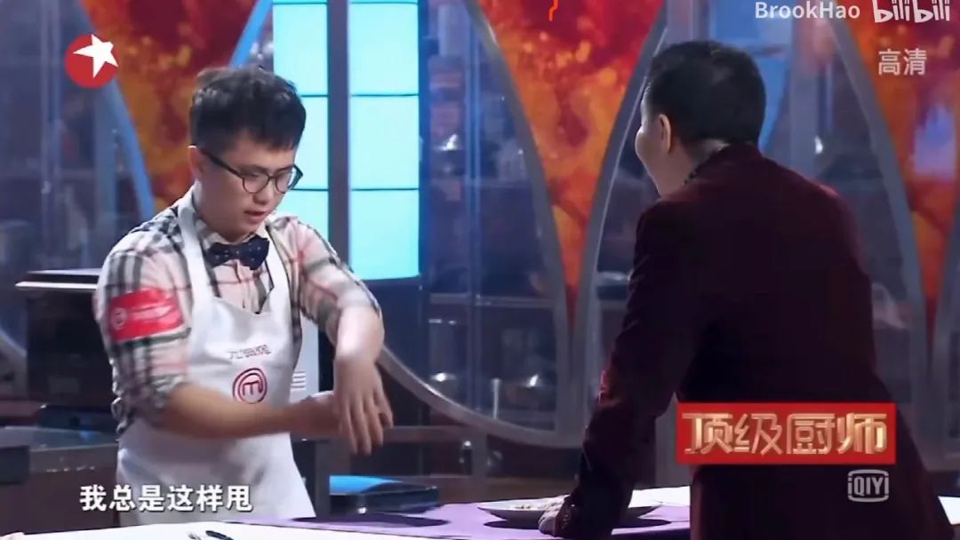 节目里,刘一帆就是压迫感的代表。做菜之前,他会威胁你:“如果让我吃到一粒沙子的话,你们就离开这个舞台吧。”做菜之中,他会来烦你:“你对自己的进度满意吗?”有被他逼着大喊自己真的很爱洋葱的选手,就有怒怼的夏鹏:“我现在不想跟你说话。”