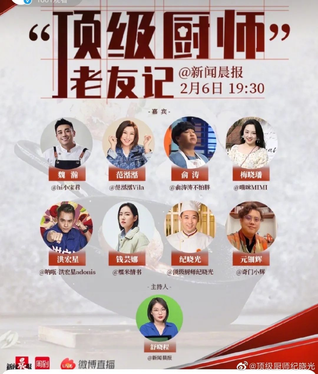 新闻晨报趁热打铁,在2月6日晚进行了微博直播连线,名为《顶级厨师老友记》。邀请了钱芸娜、纪晓光、元钿辉、洪宏星、俞涛、范湉湉、魏瀚等前选手,真有BBC纪录片《人生七年》既视感。“他们都老了吧,他们在哪里呀,我们就这样各自奔天涯。”