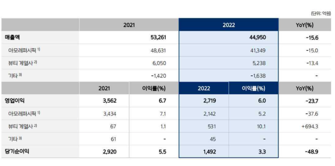 爱茉莉太平洋2022净利下滑近50%,北美市场营收+83%