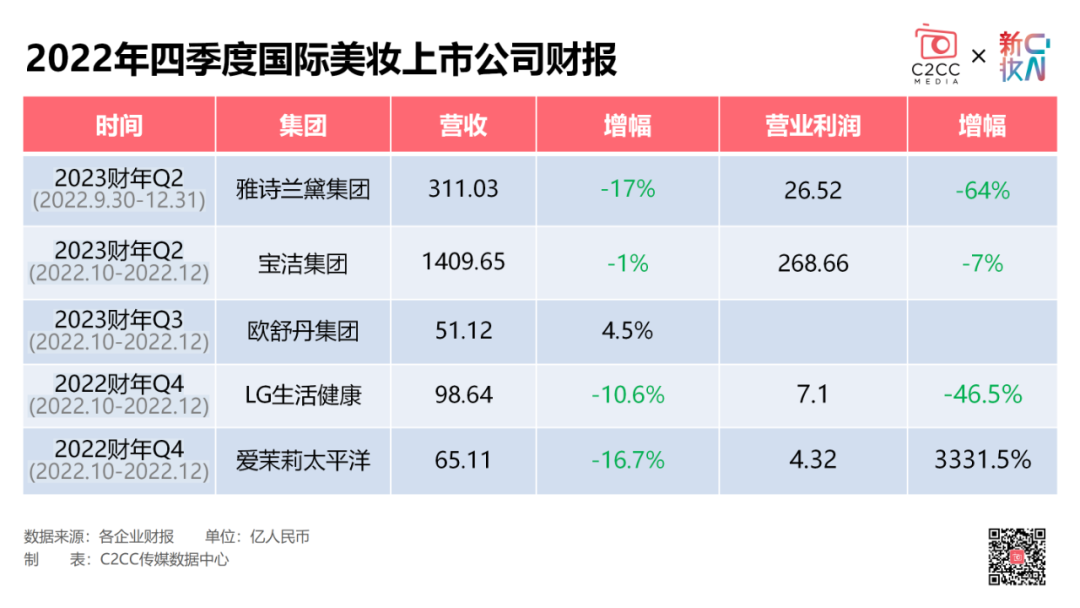 通过对上述财报的梳理,C2CC传媒X新妆发现,巨头们业绩表现有几下几大共性: