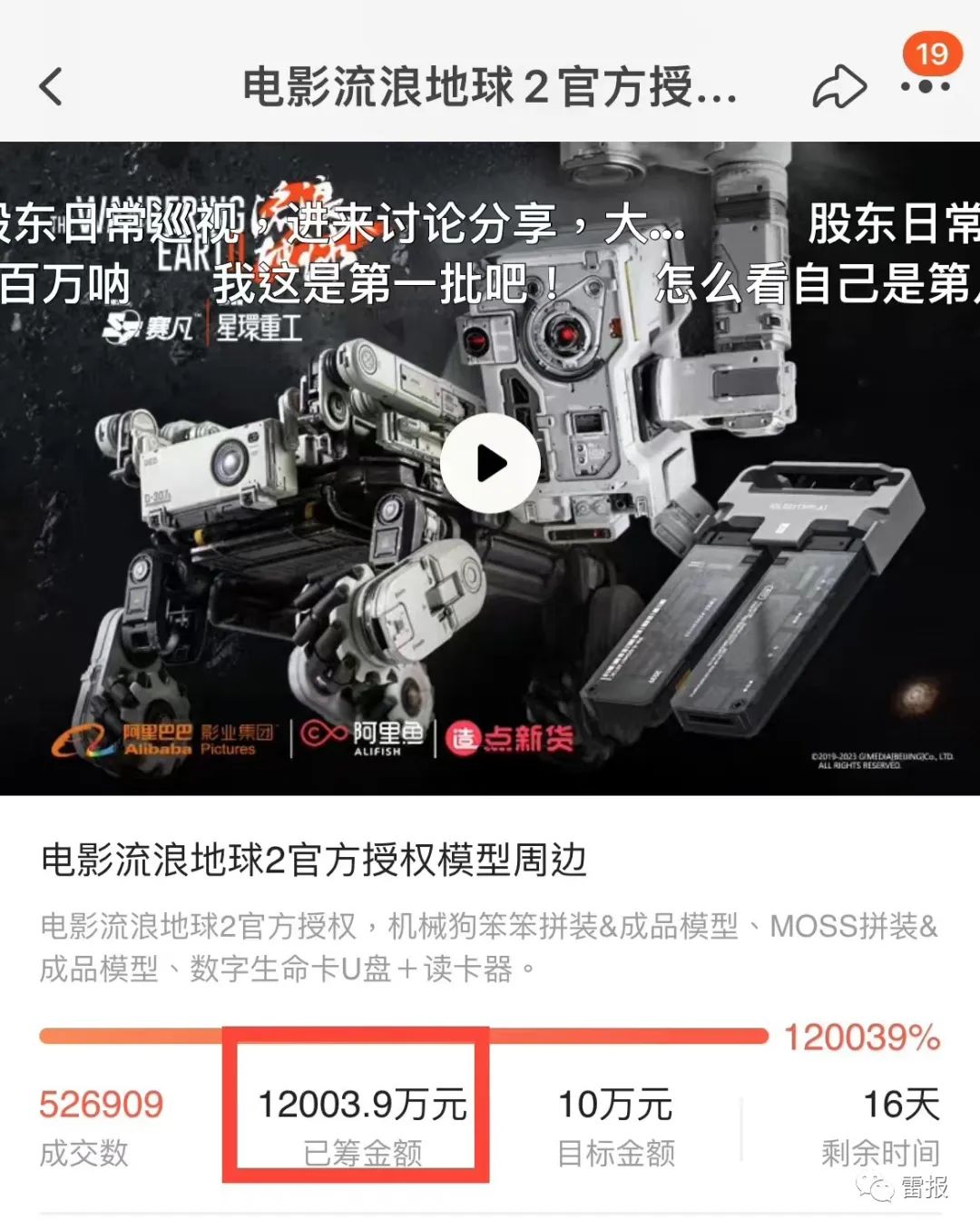 此外,随着电影《流浪地球2》的热映,《流浪地球2》的相关周边众筹项目也受到许多用户的关注和参与,并以超1.2亿元的成绩宣告结束。据悉,这不仅是破亿速度最快的影视IP衍生品,也是国产IP周边众筹项目中的唯一一个破亿者。