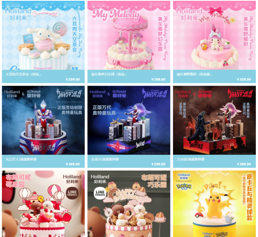 除了与阿华田、奥利奥、乐乐茶、Seesaw咖啡、Toblerone三角巧克力等食品品牌联姻,好利来更是跟草莓熊、库洛米、宝可梦、奥特曼、哈利波特等知名IP联名,甚至还跨界和当代艺术UCCA的天价香蕉联名。