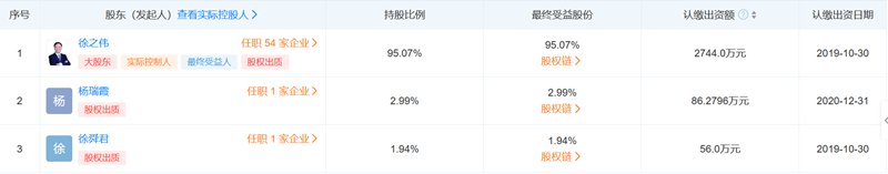 天眼查信息显示,江苏隆力奇生物科技股份有限公司和上海聚好信息技术有限公司的第一大股东均为徐之伟,分别持有57.7%、95.07%的公司股份。