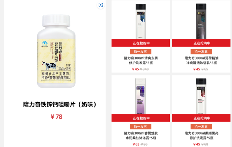 在隆力奇官方旗舰店和包括华少、张俪等明星的抖音直播间,充斥着以下推广语: