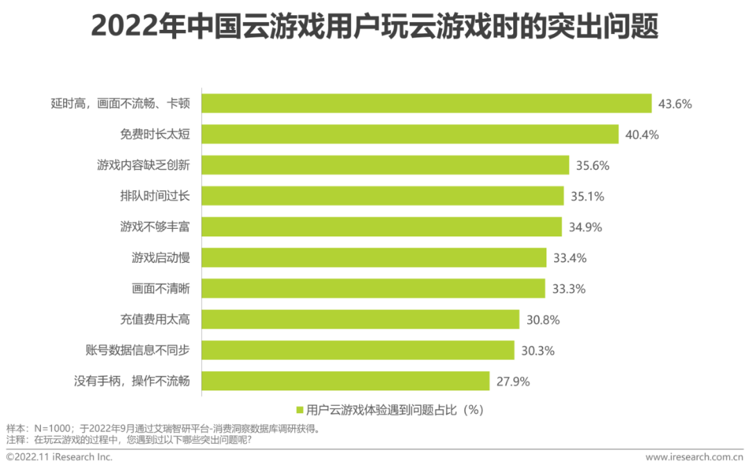 中国云游戏用户游戏体验情况云游戏仍存在一些突出的用户痛点