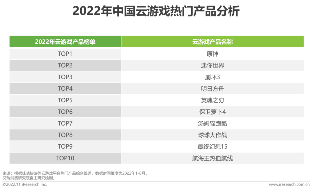 受国内游戏市场的大环境和游戏用户偏好影响,在云游戏市场中,移动游戏同样也是最热门的产品。根据咪咕快游等云游戏平台的数据显示,《原神》、《迷你世界》、《崩坏3》是用户玩得最多的云游戏产品;从游戏品类看,云游戏用户偏好的游戏题材与传统游戏用户存在一定差异,角色扮演类、模拟经营类和策略类是最受云游戏用户欢迎。