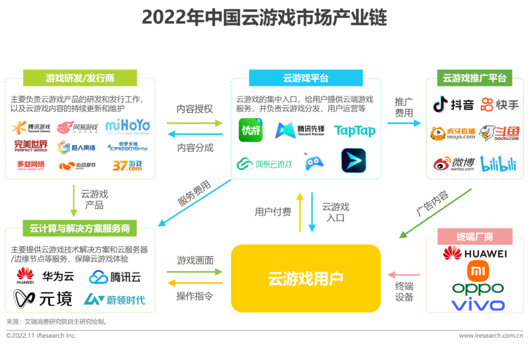 中国云游戏市场产业链云游戏产业链上下游持续完善