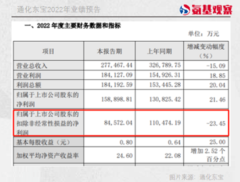 先来说国内胰岛素双雄通化东宝和甘李药业,这一对难兄难弟。2022年,通化东宝营收27.75亿元,同比降低15.09%;扣非净利润8.46亿元,同比下降21.47%。