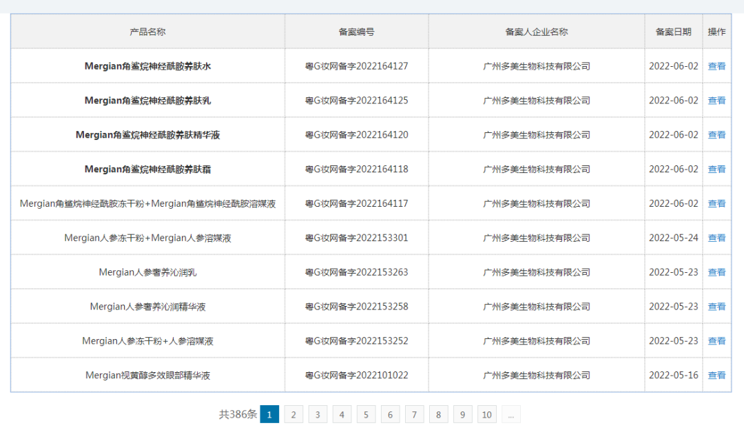 不过,青眼在国产普通化妆品备案平台搜索发现,2022年6月,多美生物仍有产品备案。