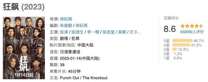 前有爆款的当代涉案剧《扫黑风暴》,如今再出豆瓣最高分9.1的反黑刑侦剧《狂飙》,扫黑题材在当下剧集市场有着广阔的市场。凭借鲜活的角色、难以摸透的剧情和层出不穷的新梗,《狂飙》不仅刷新了爱奇艺站内热度最高纪录,还在灯塔专业版、骨朵、艺恩、猫眼等第三方专业榜单上排名第一,#狂飙#这一主题话题词有87.6万讨论 47.6亿阅读。