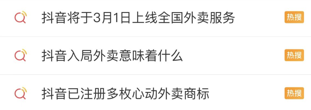 “抖音将于3月1日上线全国外卖服务”、“抖音外卖入局意味着什么”、“抖音已注册多枚心动外卖商标”等词条迅速登上微博热搜,累计获得了12亿+的阅读量。