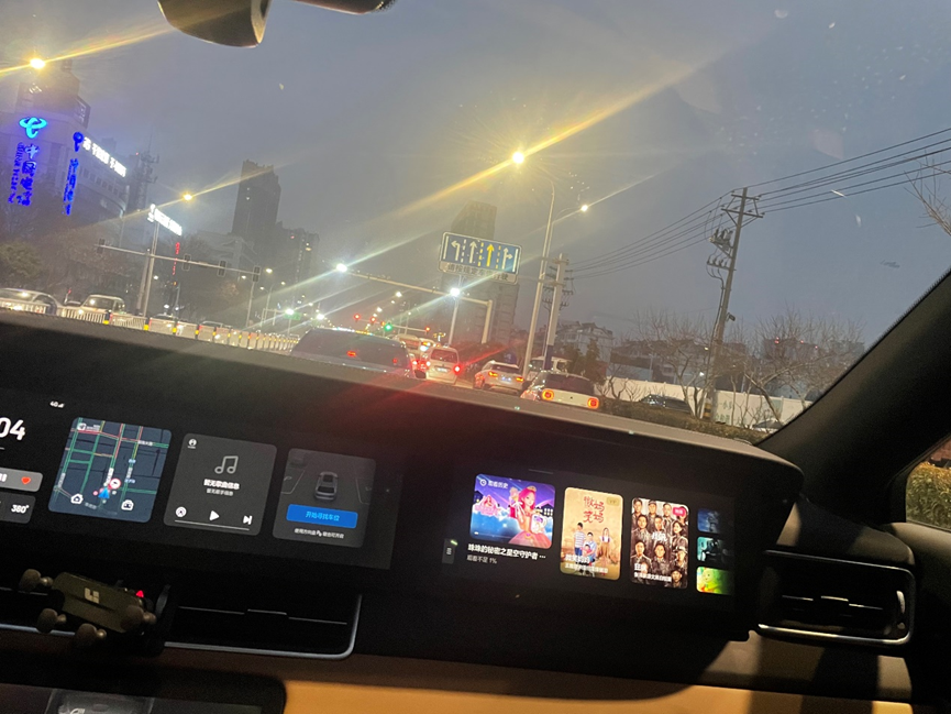 坐在副驾的我悄悄拍照,窗外就是县城的霓虹灯