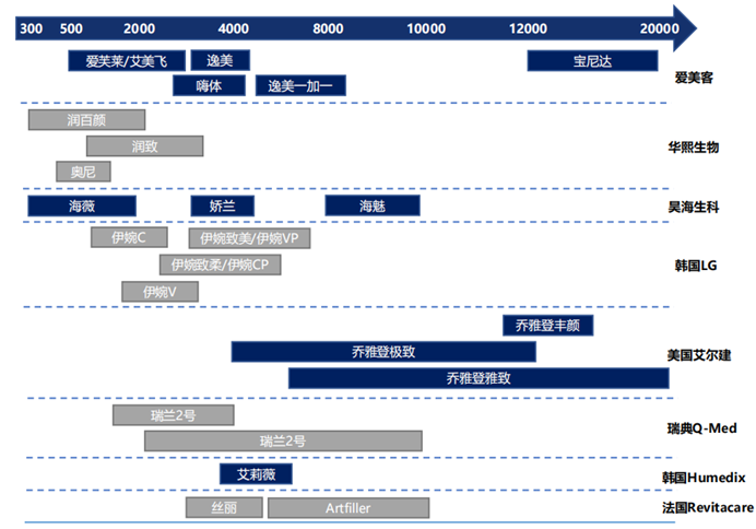 图:基于透明质酸的皮肤填充剂产品价格,来源:中航证券