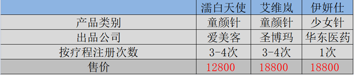 “濡白天使”则是一款“童颜针”产品,其本质是在玻尿酸基础上增加PLLA(聚左旋乳酸-乙二醇共聚物),起到刺激胶原蛋白再生的功效。目前,国内共有两款“童颜针”上市,分别是濡白天使和艾维岚,不过濡白天使性价比更高;华东医药的“少女针”则是提升了依从性的加强版“童颜针”
