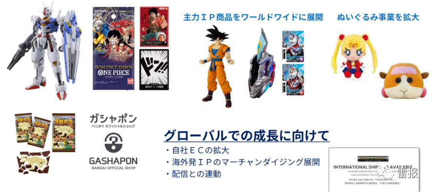 虽然受到日元贬值带来的原材料价格和燃料价格上涨的影响,但《机动战士高达》系列的塑料模型、收藏家手办和卡通彩票等面向成人的高端玩具商品,由于销售 市场营销及商品阵容的强化等,在日本国内外销售良好。此外,除了经典的IP玩具之外,《海贼王ONE PIECE》的交易卡游戏、《机动战士高达》系列数字卡牌、小零食商品和扭蛋等玩具周边商品也受到了欢迎。