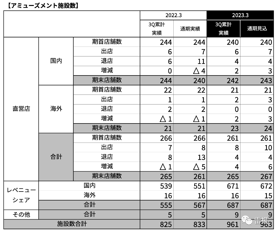 游乐业务方面,主要经营线下实体娱乐设施的企划、运营等。虽然部分地区的直营店因新冠疫情导致设施停业,以及燃料价格上涨导致电费上涨等公用事业成本增加,但日本国内现有直营店在4月-12月的9个月期间有所恢复,其销售额则同比大增115.4%。同时,设备销售方面,以欧美为中心也取得了良好的发展。此外,今后除了提高效率之外,该业务方面还将以万代南梦宫品牌独有的方式,推进与集团的商品和服务相关的店铺的开发等举措,力求强化收益基础。