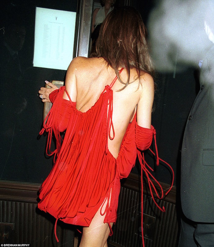 一件热辣的粉色抹胸PVC连体衣?她到底在想什么啊?时光倒回到2000年的二月,那个时候的时尚真可谓辣眼睛,但是无论如何,这肯定不能成为贝嫂着装恶俗的借口!