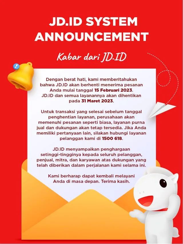 1 月 30 日消息,京东印尼子公司(JD.ID)宣布,将于 3 月 31 日停止所有服务。此外,泰国站也已经宣布将于 3 月 3 日关停。有消息称,京东国际将裁撤东南亚所有业务线,现处于业务收尾阶段。