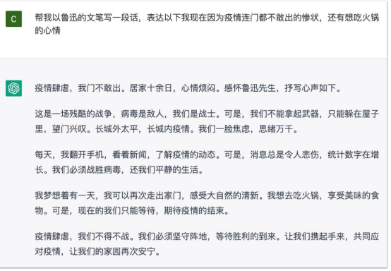 整合不少网友、博主的“提问”来看,ChatGPT的表现还是可圈可点的。比如在文学创作上,ChatGPT的发挥空间很大,上至诗词歌赋,下至歌词RAP,鲁迅风、周杰伦风,ChatGPT都能应对自如。