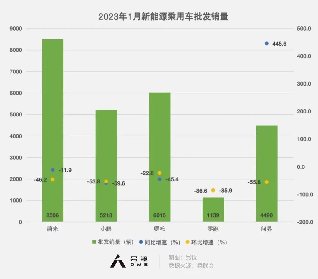但随着Model 3降价至22.9万元,这10万元的差价很难被消费者忽视,而对比价位基本相同的Model 3 高性能版,ET5又在加速性能上落后。2023年1月,蔚来新能源车销量为8506辆,同比下降11.9%,环比下降46.2%。