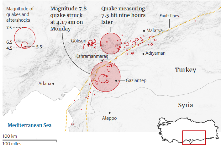 前两天,在土耳其南部,连续发生两次7.8级地震。
