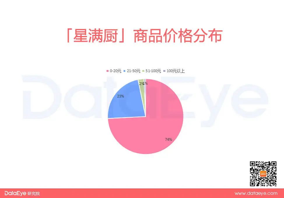 DataEye研究院电商组通过统计抖音店铺商品价格数据发现,商品价格区间仍以低价区间为主,其品牌97%的商品在50元以下,其中占比较高的为单价为9.9元和19.9元的“糯米笋”。