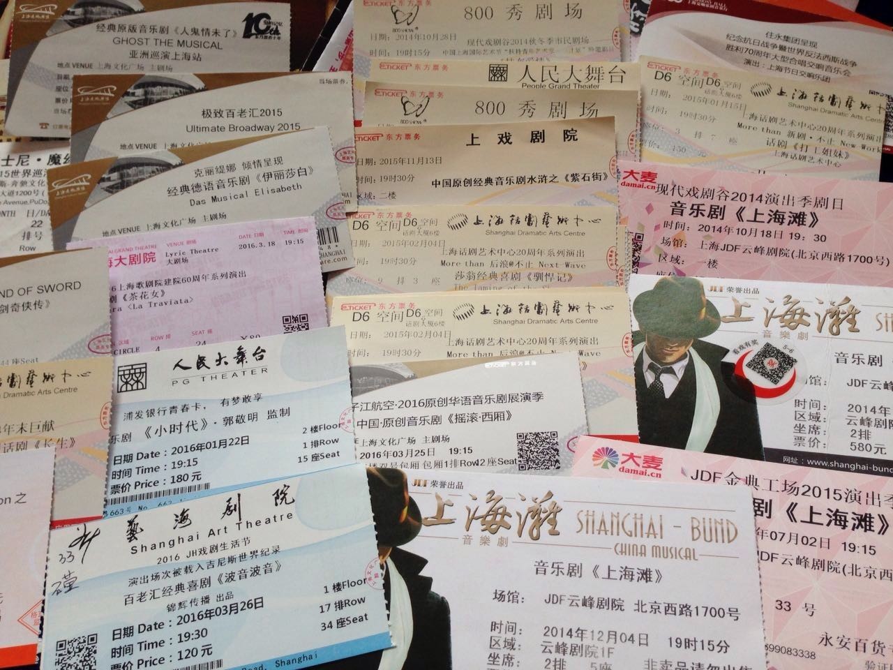 2014至2016年至今,我观看各类戏剧数量超过一百多部:有歌剧、音乐剧、舞台剧、芭蕾舞剧、话剧、音乐会、演唱会、各类戏剧(越剧、沪剧、黄梅戏)等。