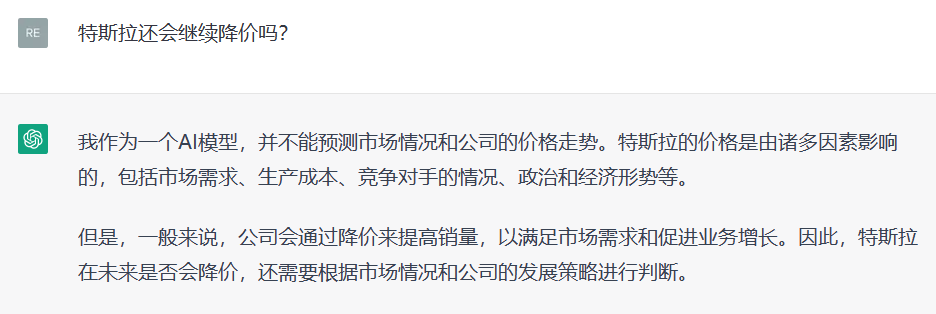 ChatGPT: 我作为一个AI模型,并不能预测市场情况和公司的价格走势。特斯拉的价格是由诸多因素影响的,包括市场需求、生产成本、竞争对手的情况、政治和经济形势等。