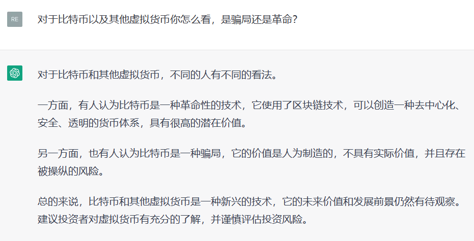 ChatGPT: 对于比特币和其他虚拟货币,不同的人有不同的看法。