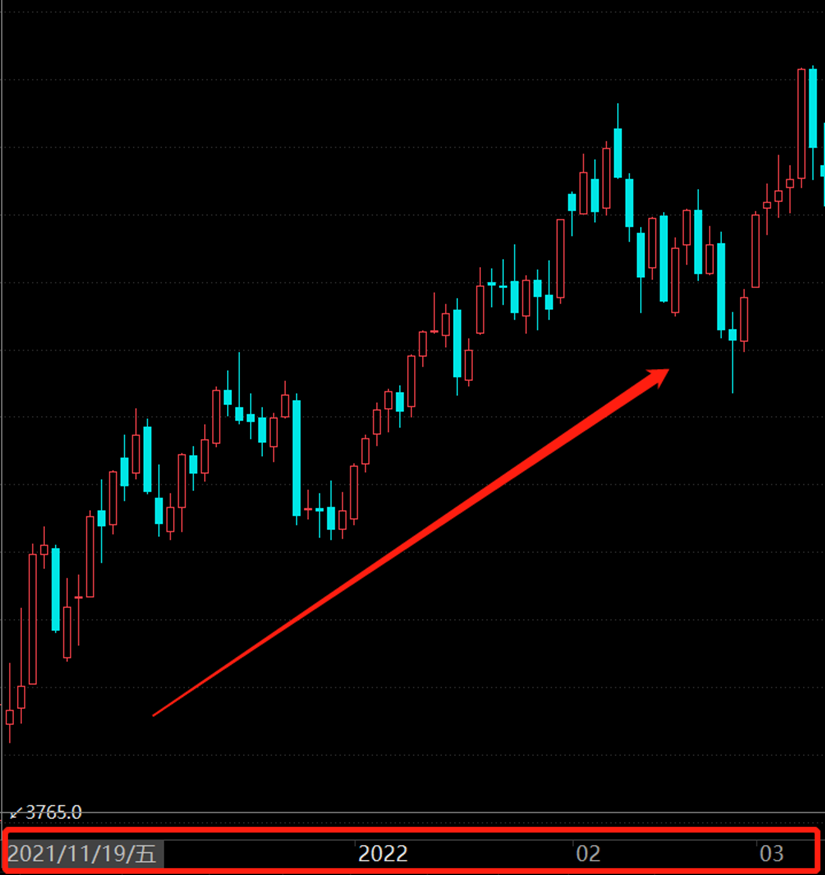 看盘软件上螺纹钢期货的走势,可以大致代表钢铁厂对废铁的回收价格走势,2021年11月-2022年3月,螺纹钢期货价格一路上涨(图源:Choice金融终端)