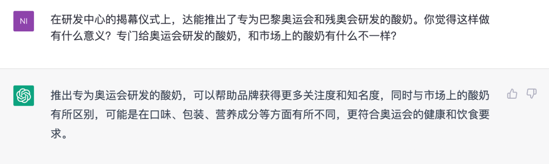 ChatGPT认为,这能提高品牌的关注度和知名度,因为奥运会对食品有自己的要求。