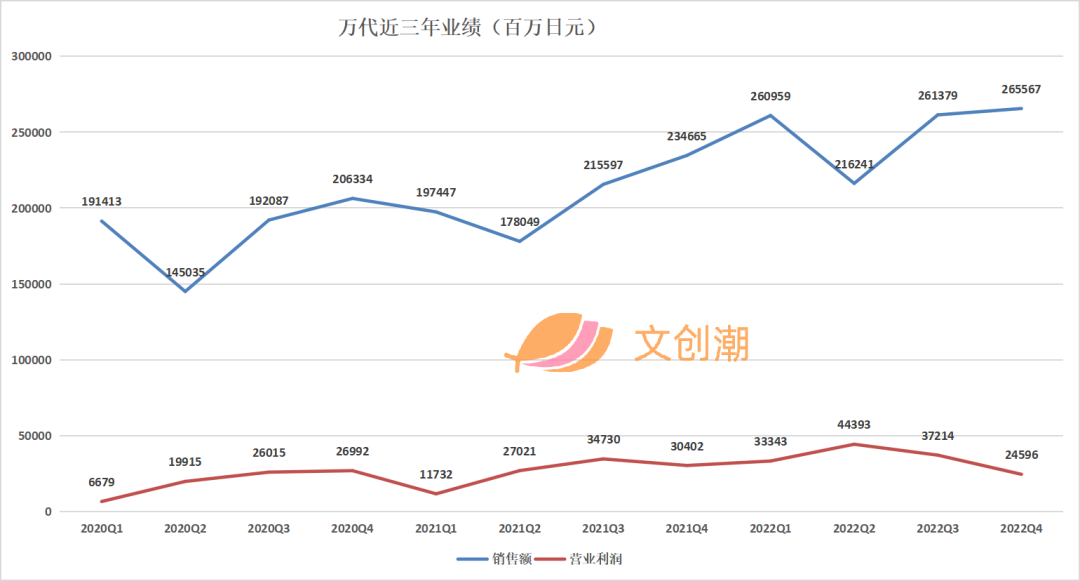 2022年的万代玩具事业方面,虽然受到了日元贬值导致原材料价格上涨、运费增加等因素影响,全年仍旧保持良好增长态势,2022年销售额4328亿日元,同比增长19.49%,营业利润545亿,同比增长1.49%。