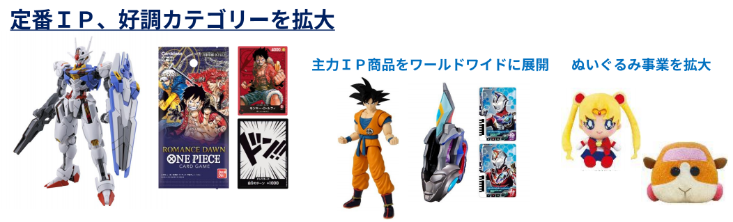 在扩大以钢普拉为中心的玩具事业同时,万代还开发《高达:进化》等大型游戏,在各事业领域谋求进一步发展。