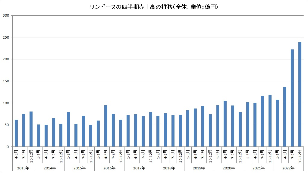 《海贼王》方面同样创下历史新纪录,四季度达239亿日元,同比大幅增长102.5%。除《ONE PIECE FILM RED》联动内容表现良好外,卡牌功不可没。