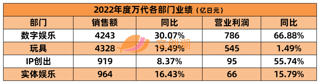 2022年,从疫情打击中恢复的万代,全年业绩表现良好,各部门业绩同比全面大幅增长。