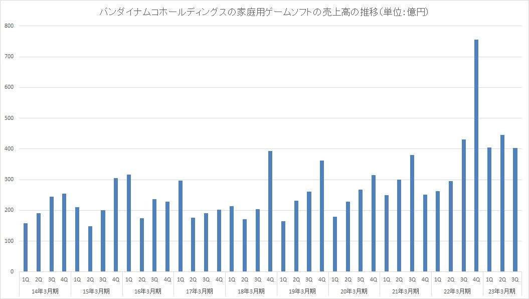 2022年万代家庭用游戏销售额2010亿日元,同比大幅增长62.23%。