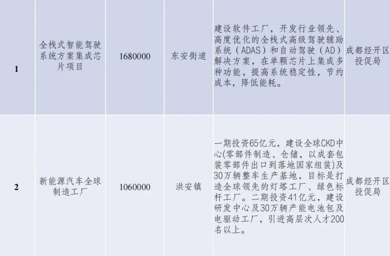 去年7月,比亚迪曾和成都签署战略合作协议,根据协议双方将在新能源汽车等战略性新兴产业领域开展更加广泛、更深层次的务实合作。不久后,成都汽车重镇龙泉驿发布投资机会清单,清单披露多个新能源汽车产业项目,包括汽车全球制造工厂、全栈式智能驾驶系统方案集成芯片项目等在内,涉及金额达800余亿。此外,日前成都再与正威集团签署合作协议,双方拟在新能源汽车等领域展开合作。