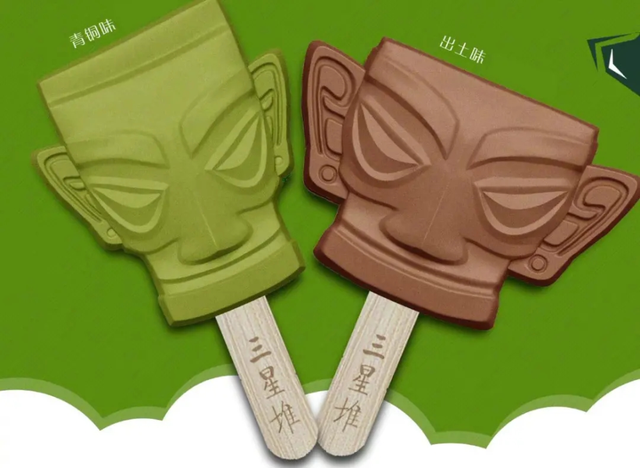 2021年五一假期推出三星堆雪糕,分别是“出土味”(巧克力)和“青铜味”(抹茶),这是常规操作。