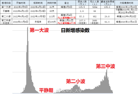 四个月后,第三波来临,感染人数达到了第一波的93%。至2023年1月下旬,第三波已持续109天。