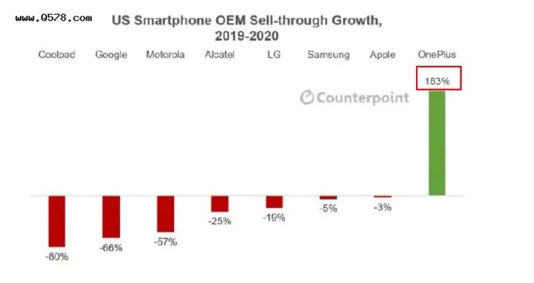 2020年度,凭借一加8系列的火爆销量,一加成为美国手机市场唯一逆势增长品牌,年增幅达163%。2021年第一季度,一加在欧洲市场销量增长388%,销售额同比增长286%,势头强劲。