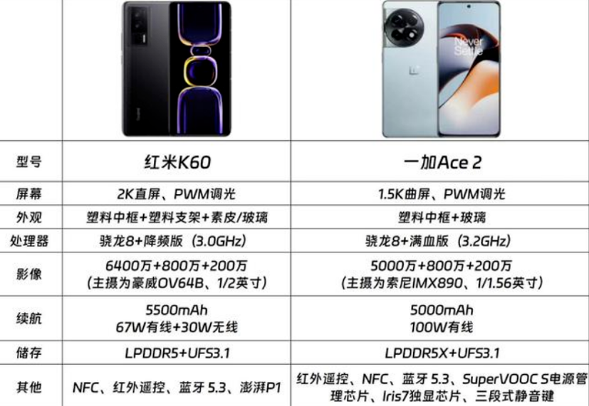 问题在于,相比红米K60,一加Ace 2是否有完胜的把握?