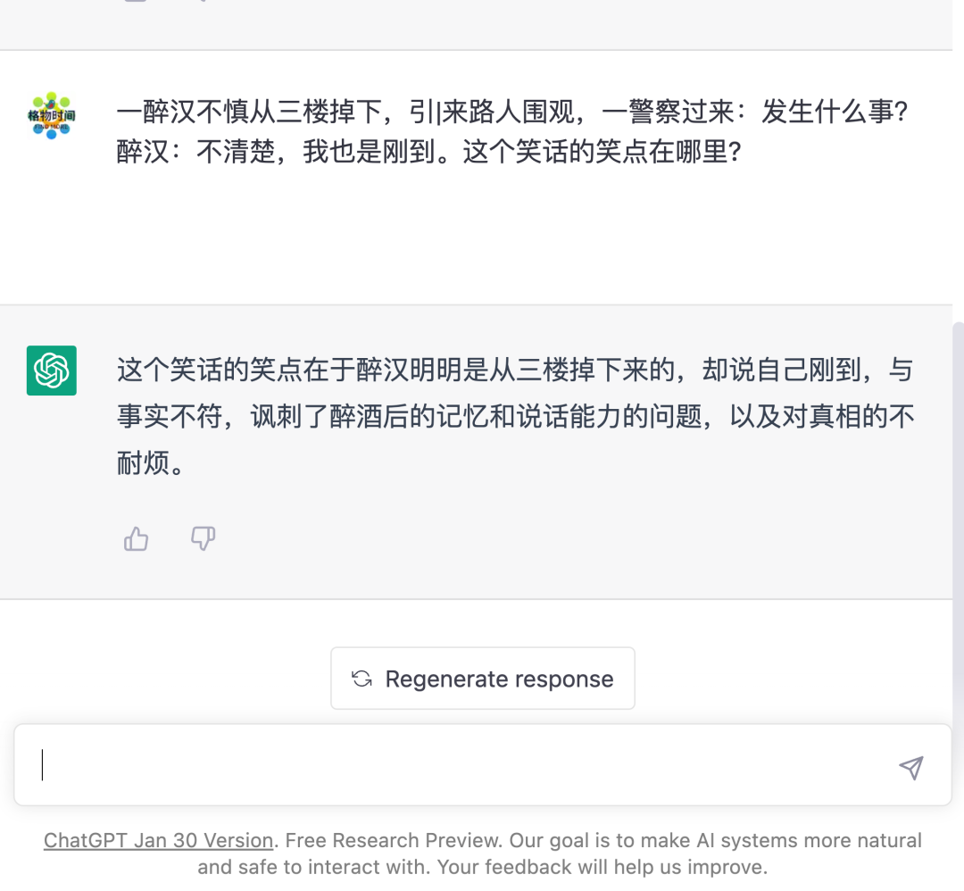 ▲ 格物时间发现,ChatGPT能够读懂笑点。图 / 受访者提供