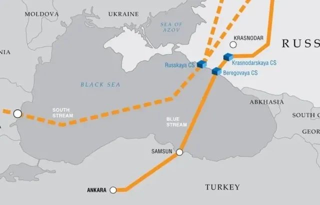 “土耳其溪”管道从俄罗斯出发,跨越黑海到达土耳其色雷斯地区,向东欧和南欧的部分国家供气。
