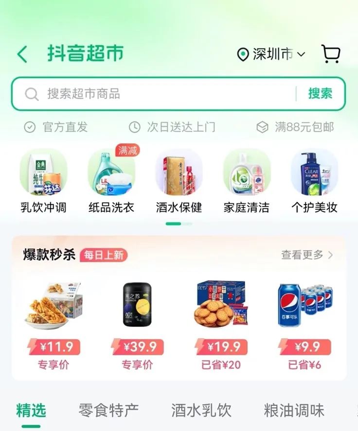 其次,相比纯电商交易平台,超市品类更少也更容易控制,还有一定的利润,抖音凭借高流量优势,可以短时间内形成自己的选品优势。
