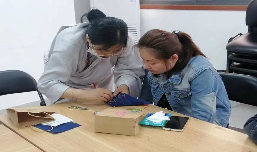 近年来,非遗保护与传承事业逐步受到社会重视。越来越多的非遗基地求贤若渴,广泛招募静得下心的手艺人前来学习、传承技艺,参与相关产品的开发与制作。比如不少刺绣基地,每逢忙季都人手紧缺,亟待支援。与此同时,许多残障青年则面临着就业难题。二者需求如此契合,让恩三负责人高慧萌生了“前线搭桥”的想法。